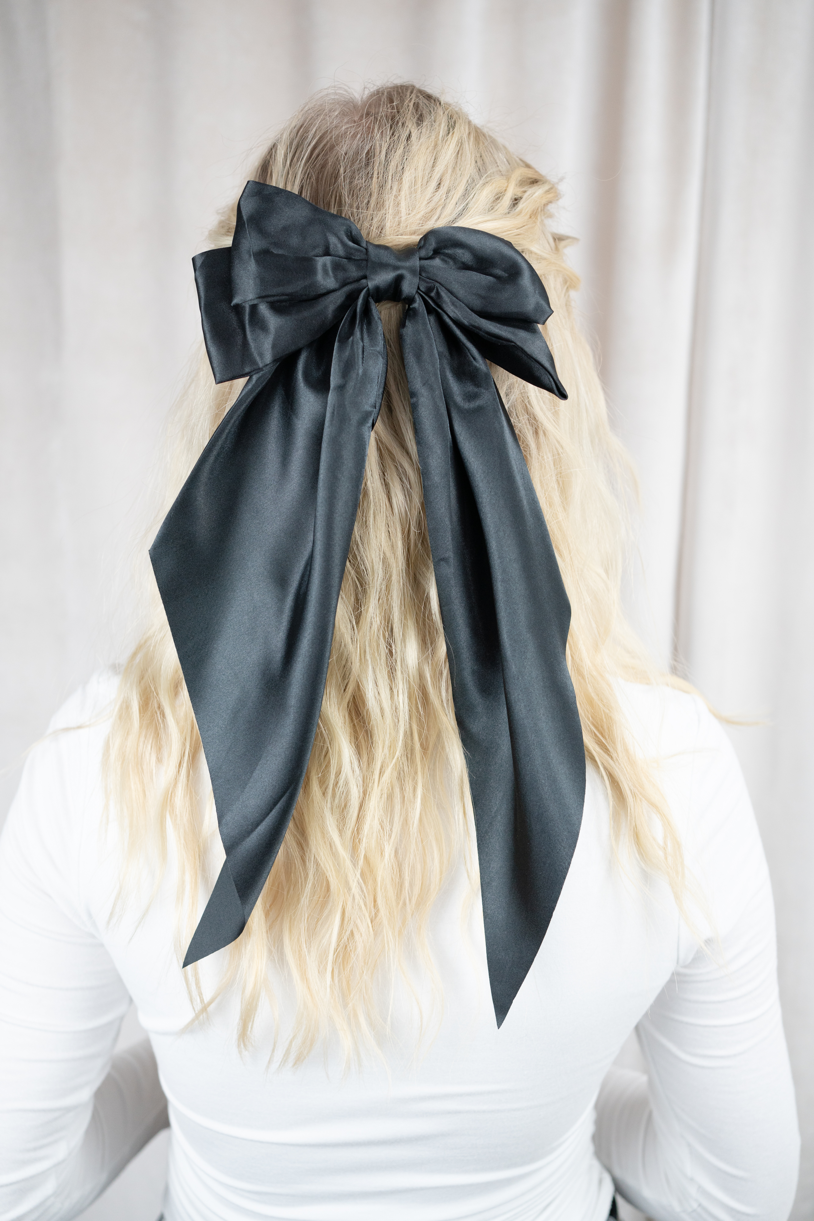 Süße Haarspange mit Metallklammer und Schleife aus Satinstoff.