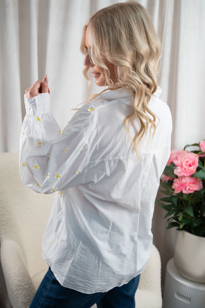 Ein wunderschöe Bluse aus 100% Baumwoll-Voile mit bestickten Gänseblümchen Applikationen.