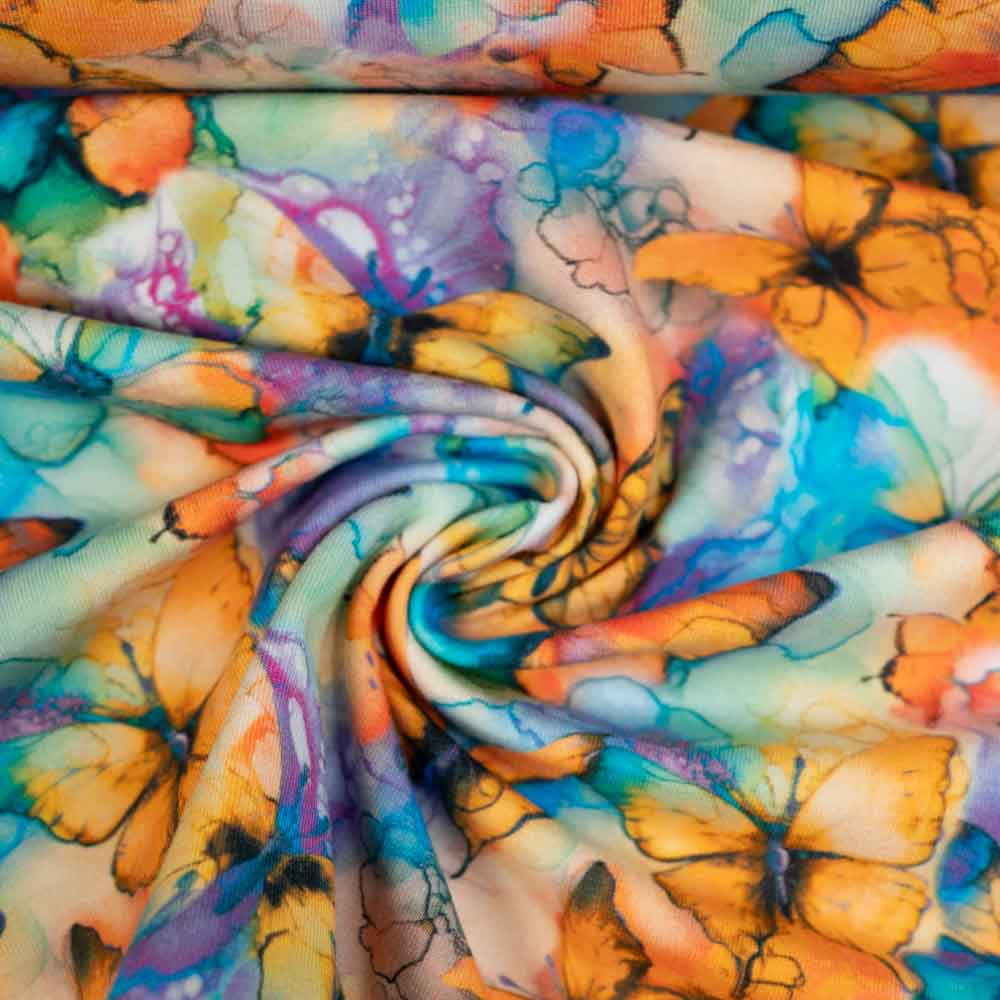 Baumwolljersey Aquarell Schmetterling apricot