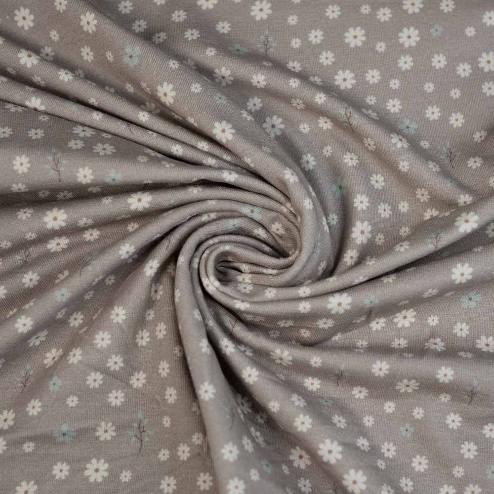 Baumwolljersey kleine Gänseblümchen taupe