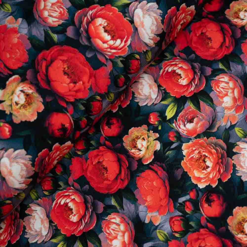 Baumwolljersey Pfingstrosen rot
