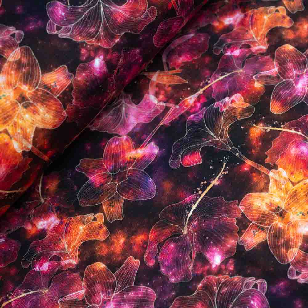 Baumwolljersey Shiny Hibiskus bordeaux