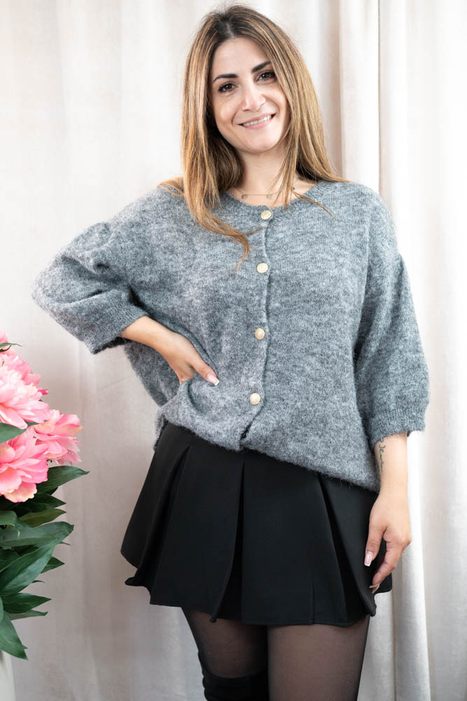 Softer Cardigan mit 3/4 Arm und hochwertigen goldenen Metallknöpfen.