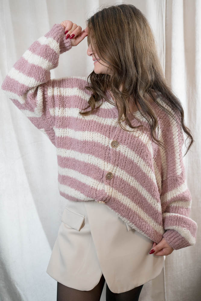 Cardigan Cozy Blockstripes altrosa