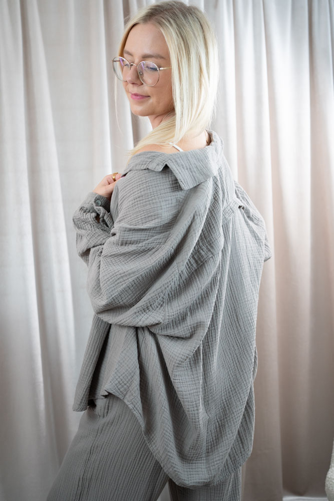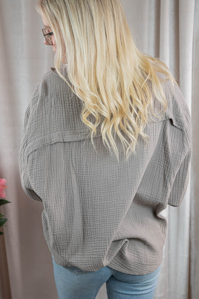 Lässig geschnittene Musselin Bluse mit Perlmuttknöpfen.