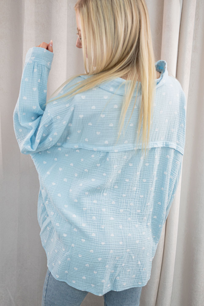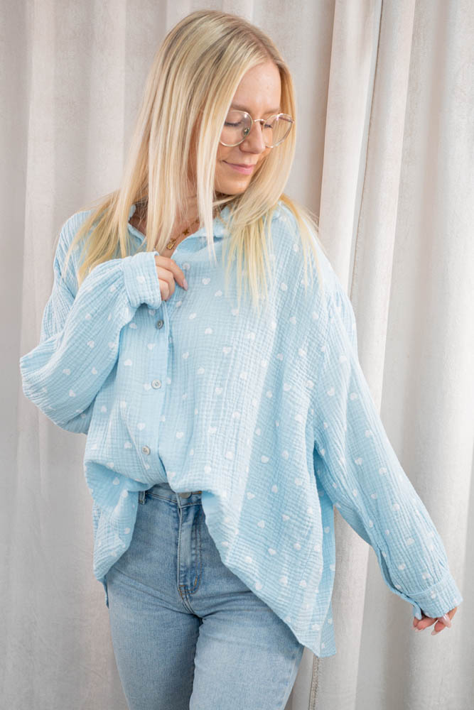 Schöne Oversize Bluse mit Herzchen Print aus Musselin - hergestellt in Italien.