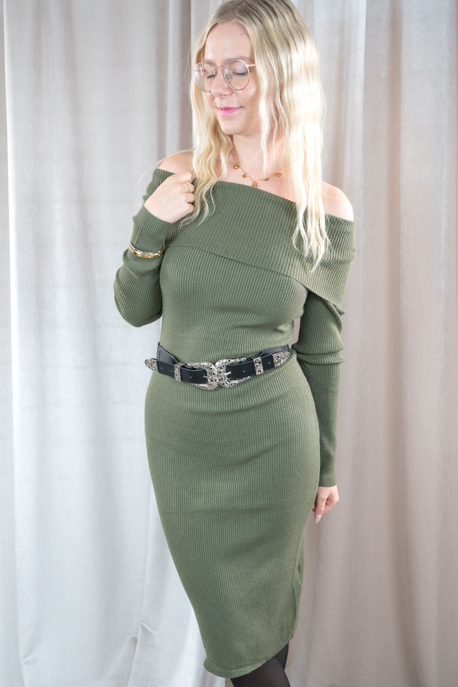 Super Softes Rippstrick Off-Shoulder Kleid.