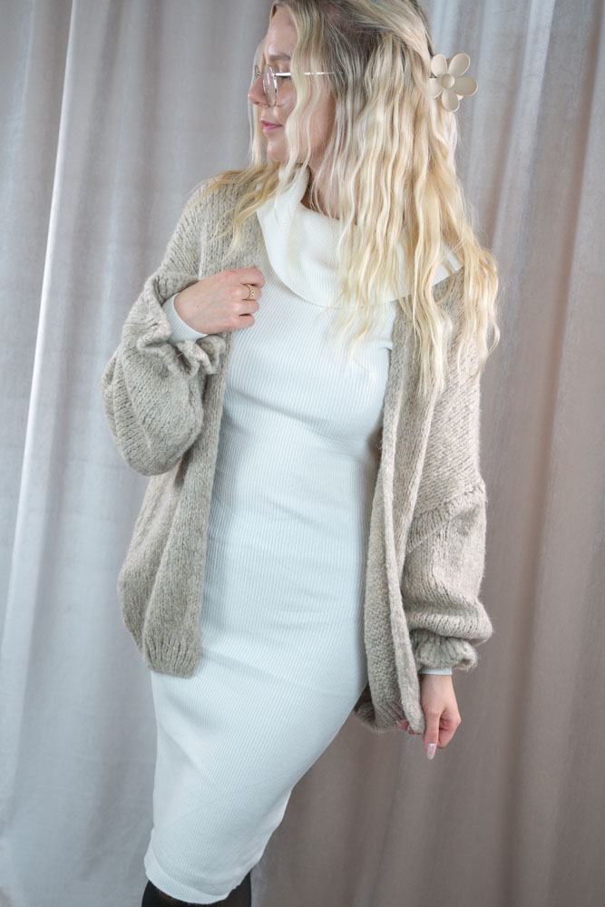 Rippstrick Kleid Off-Shoulder creme