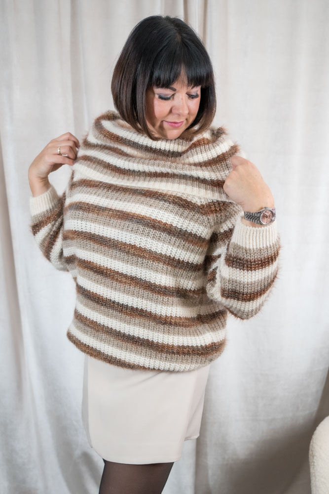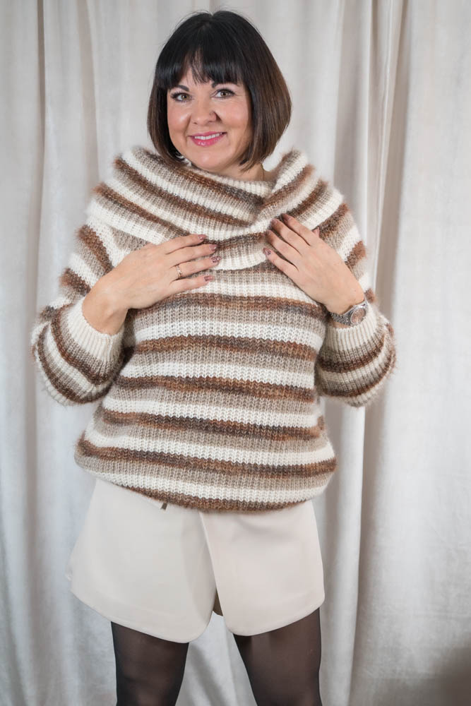 Off shoulder Pullover Fluffy Streifen beige