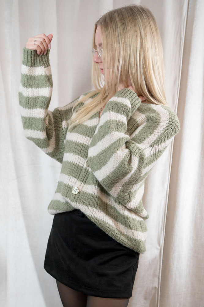 Cardigan Cozy Blockstripes khaki