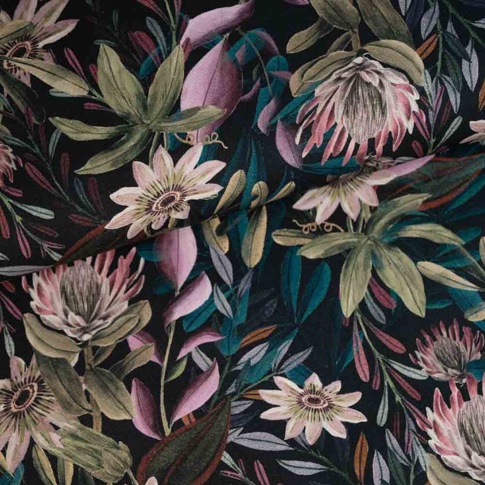 Canvas tropische Blumen schwarz