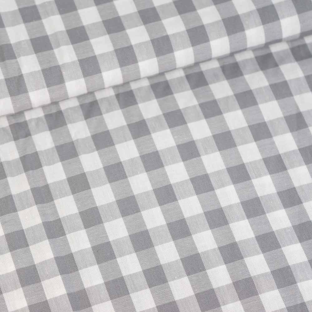 Edle Baumwoll Popeline Karo Groß 8mm hellgrau