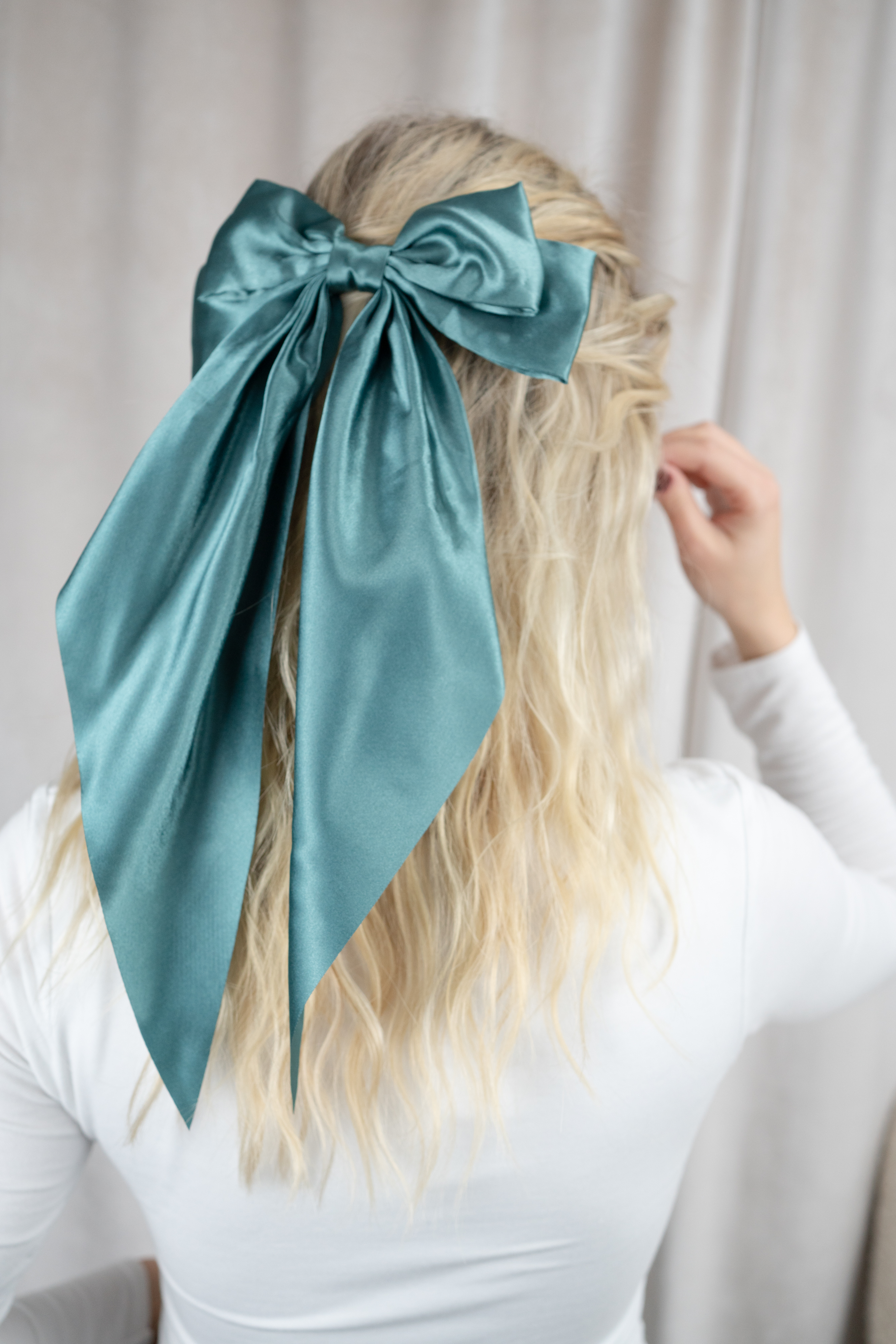 Süße Haarspange mit Metallklammer und Schleife aus Satinstoff.