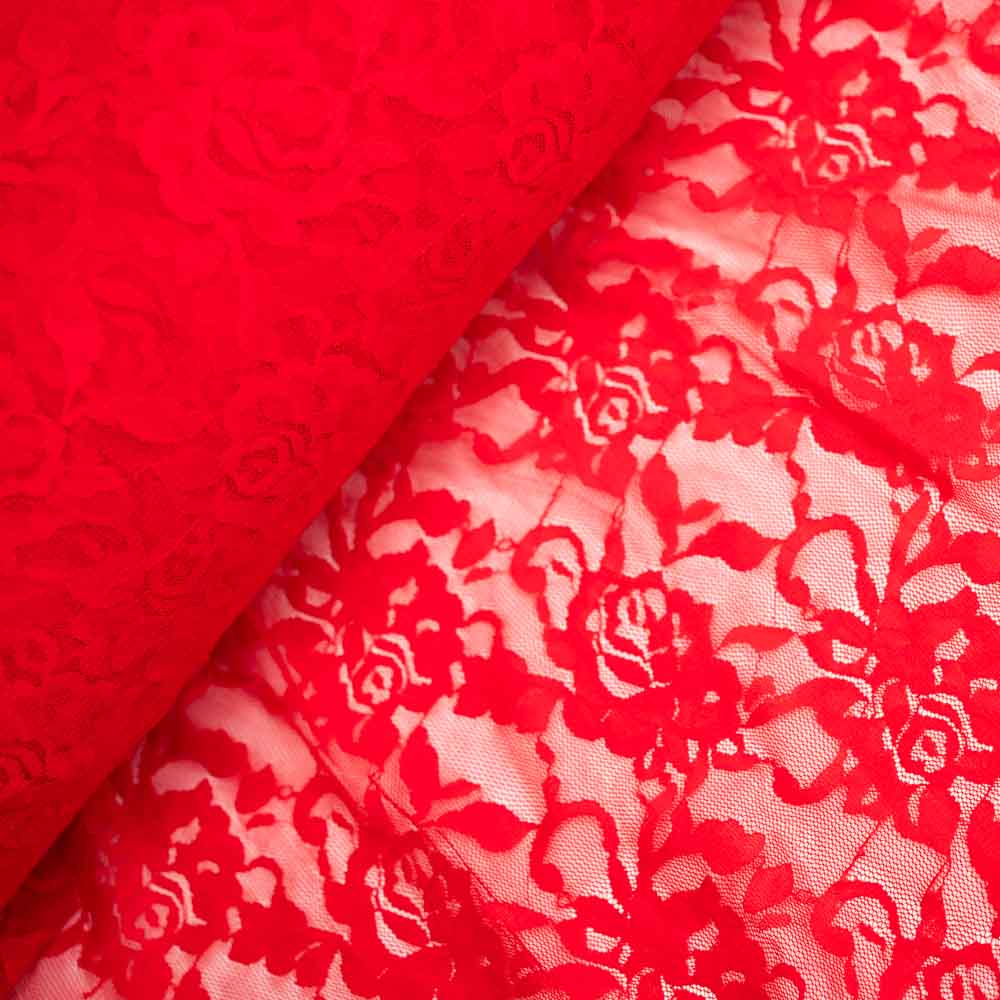 Italienische Spitze STRETCH Rosen rot