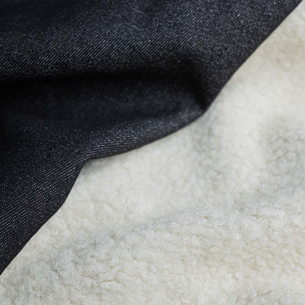 Ein dicker Jeans Denim mit Teddyinnenseite. Ein dicker warmer und solider Stoff für Jacken und Jeanswesten.