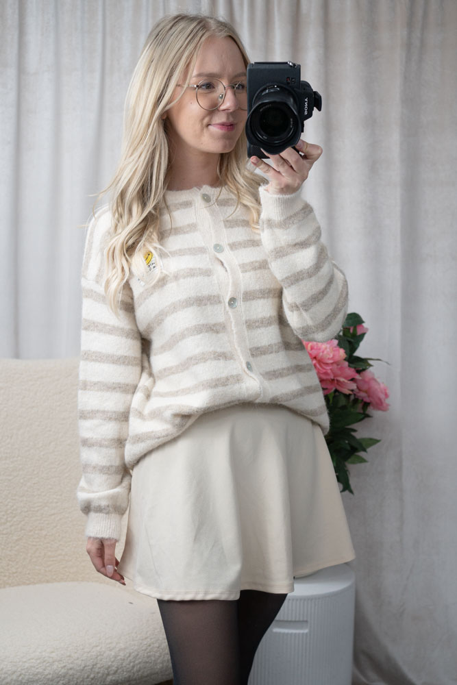 Süßer hoch taillierter und ausgestellter Rock aus Kreppstoff mit Gummi im Bund.
