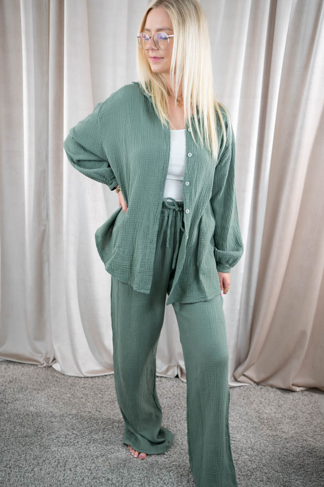 Musselinbluse Tiara dusty mint dunkel