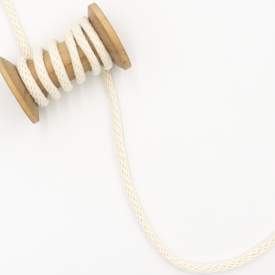 Gestrickte Kordel aus 100% Baumwolle. Im Griff sehr weich und biegsam.