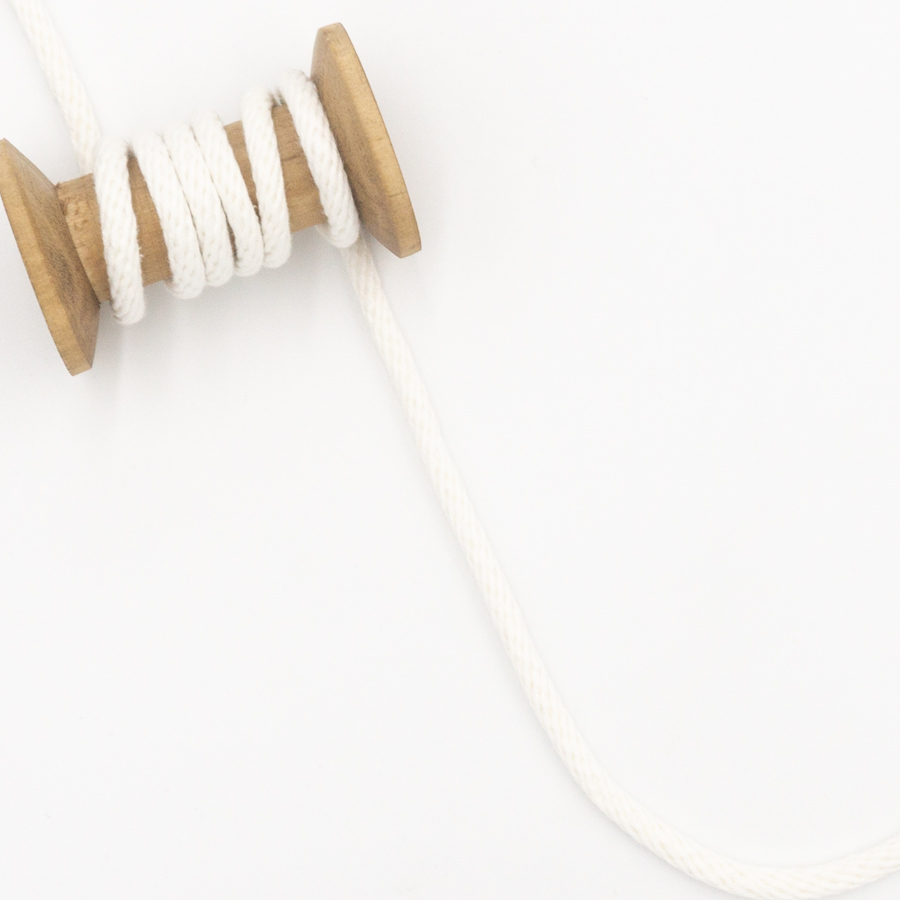 Gestrickte Kordel aus 100% Baumwolle. Im Griff sehr weich und biegsam.