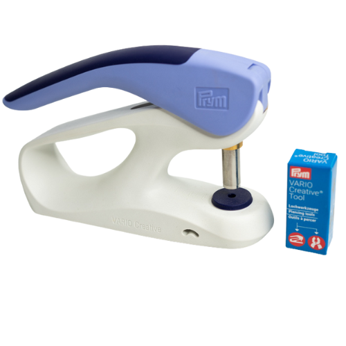 Eine Jeans mit Nieten verzieren, Druckknöpfe an Babykleidung anbringen oder Löcher für eine Hoodie-Kordel ausstanzen und mit Ösen versehen – mit dem Vario Creative Tool lassen sich die vielfältigen Nähfrei-Produkte von Prym ganz leicht und ohne Kraftaufwand verarbeiten. Dank des ergonomischen Griffes mit Soft Touch Oberfläche liegt der Krafthebel angenehm und rutschfest in der Hand.