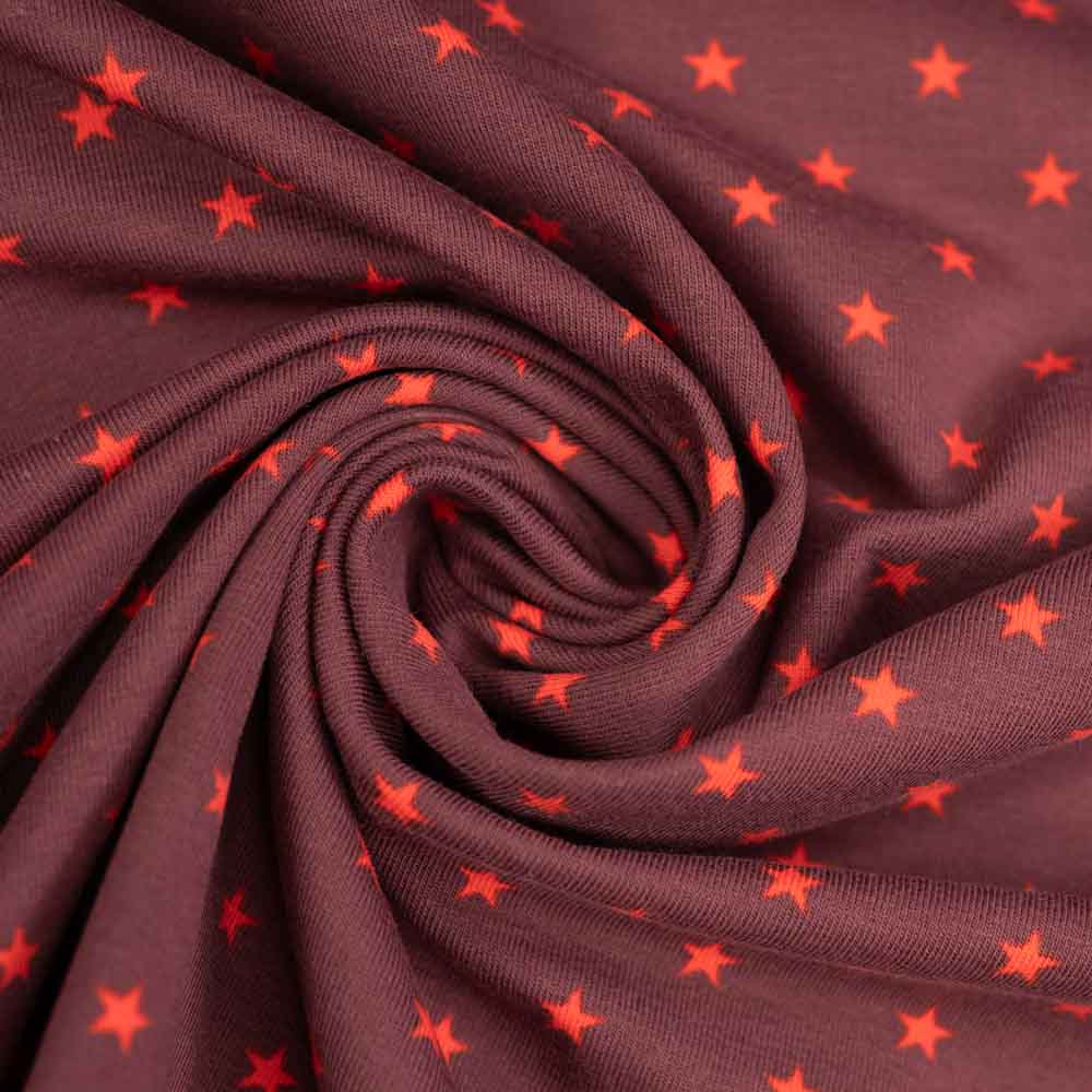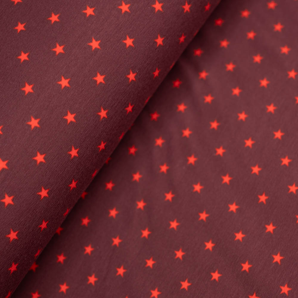 Baumwolljersey Sterne bordeaux