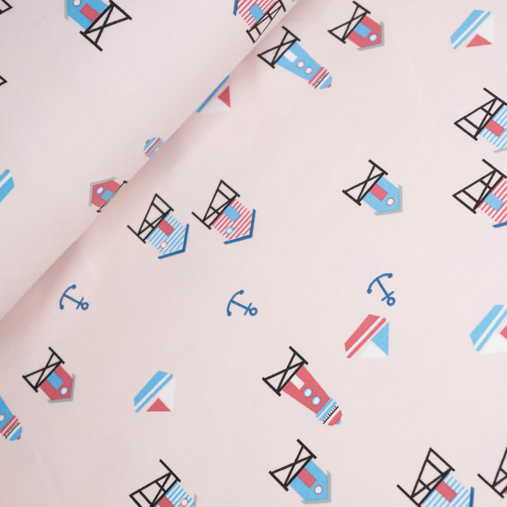 Baumwolljersey Leuchtturm und Anker zartrosa