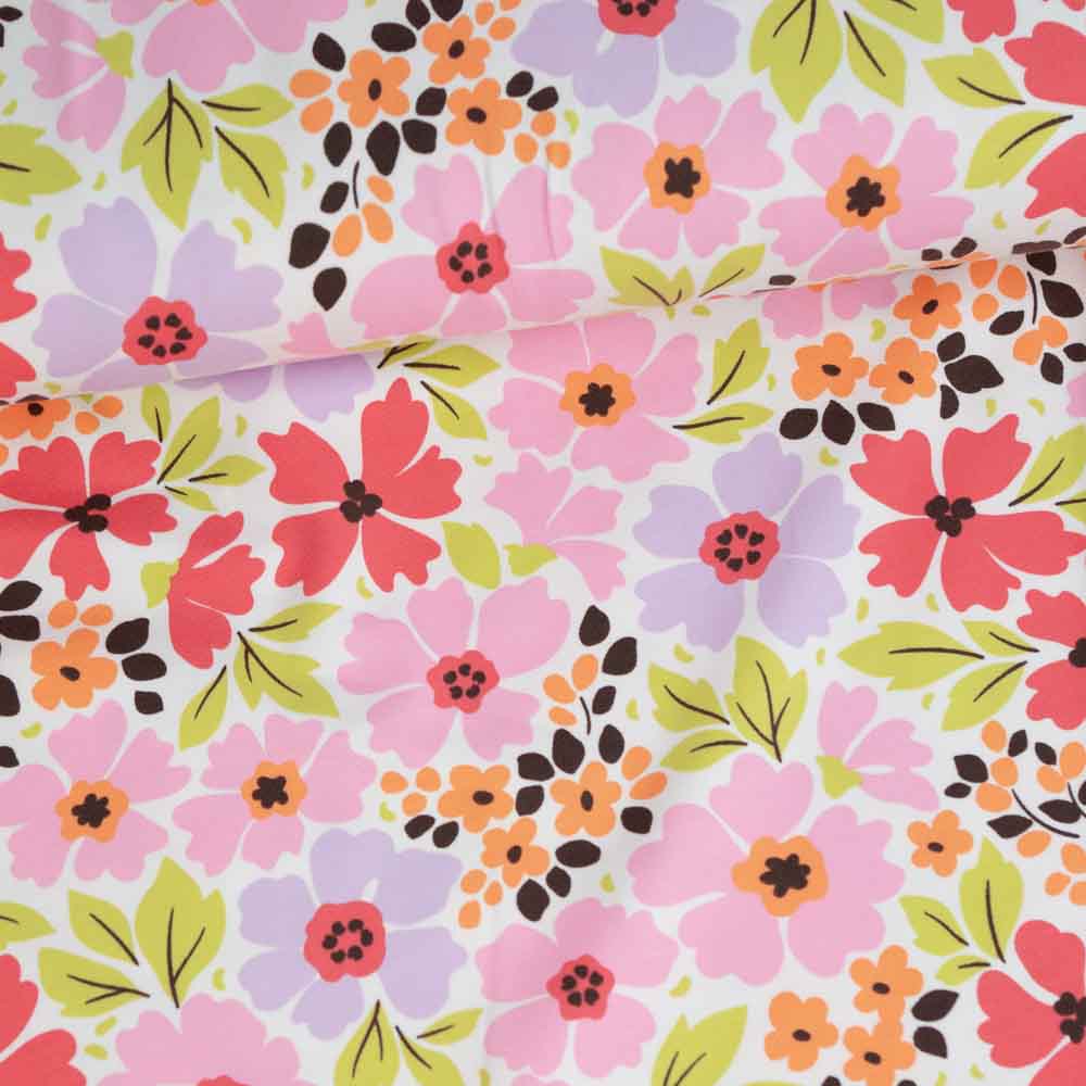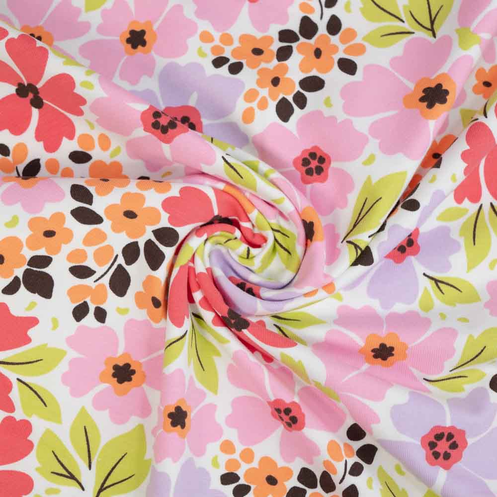 Baumwolljersey bunte Blümchen ecru