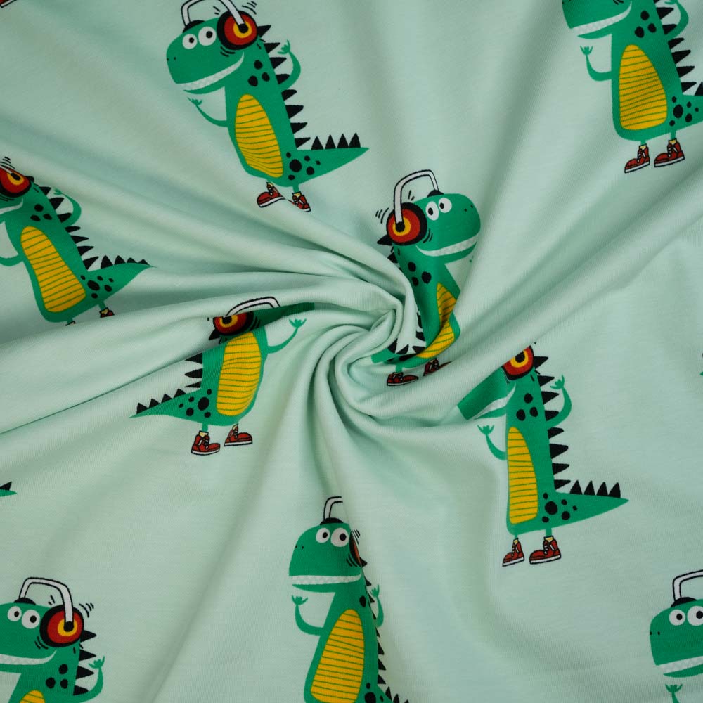 Baumwolljersey Musik Krokodil mint