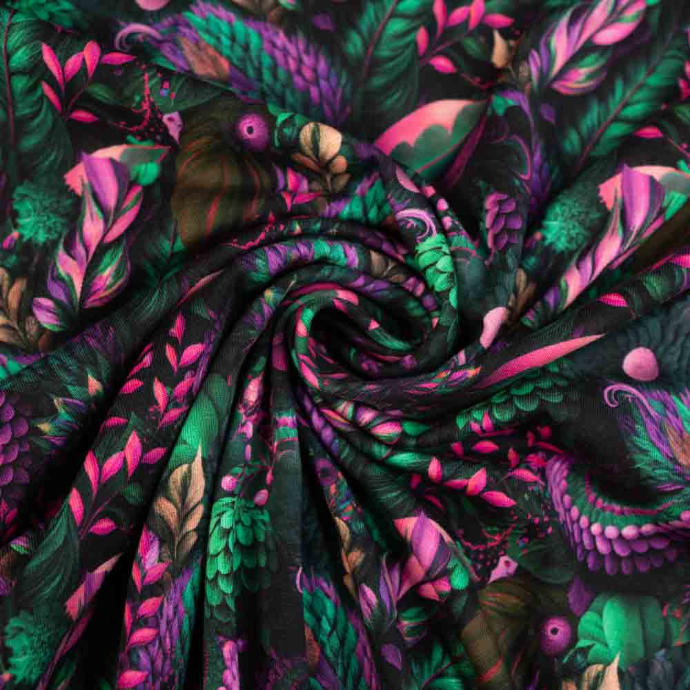 Baumwolljersey mystische Blätter tannengrün