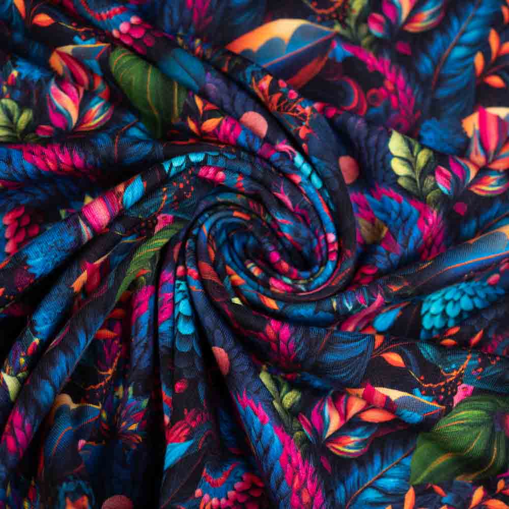 Baumwolljersey mystische Blätter royalblau