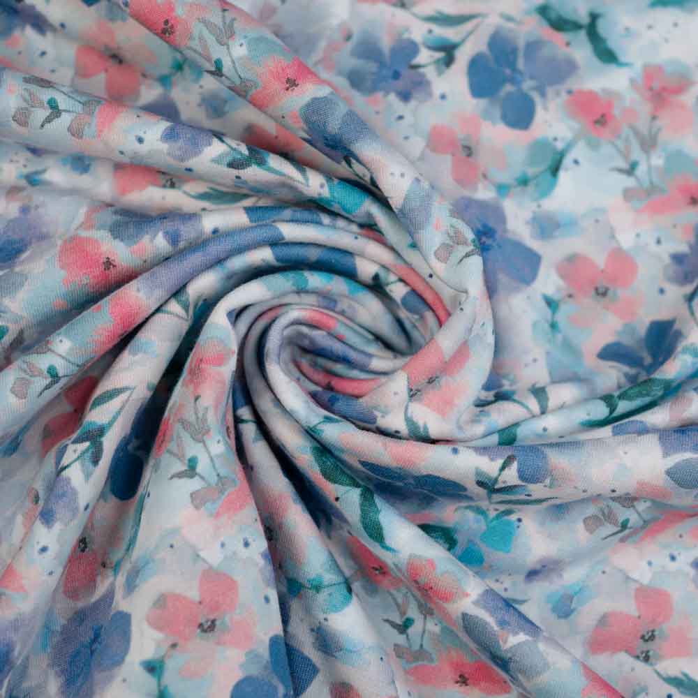 Baumwolljersey zarte Blümchen jeansblau