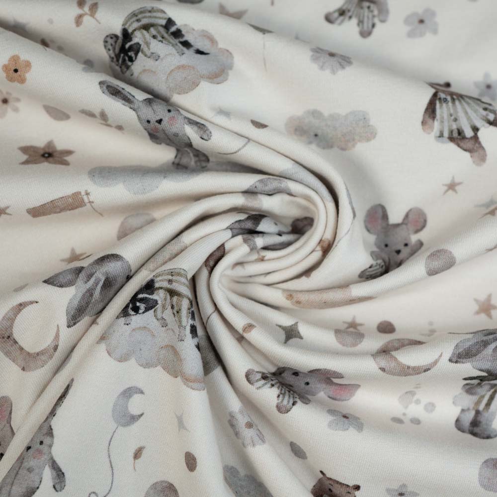 Qualitativ hochwertiger Baumwolljersey, welcher ideal geeignet ist für Babykleidung und -accessoires, sowie für jegliche Ober- und Unterbekleidung, Röcke, Kleider, Tops, Shirts, Hosen, Mützen, Loops, Sport und Freizeitbekleidung etc.