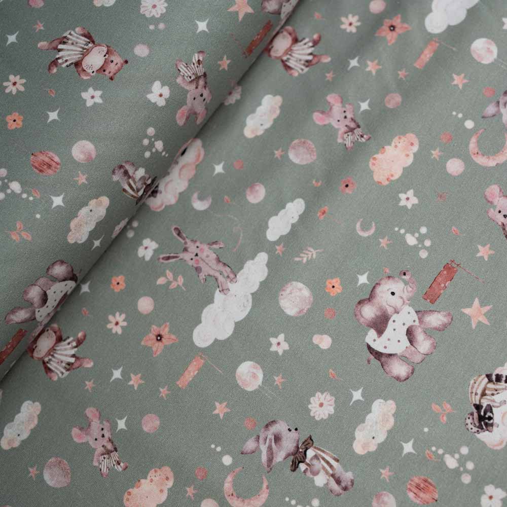 Baumwolljersey süße Tierchen salbei