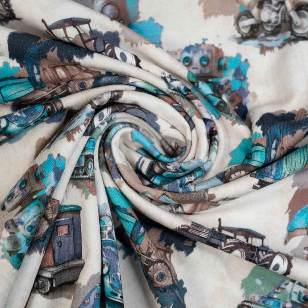 Baumwolljersey Rakete & Roboter beige