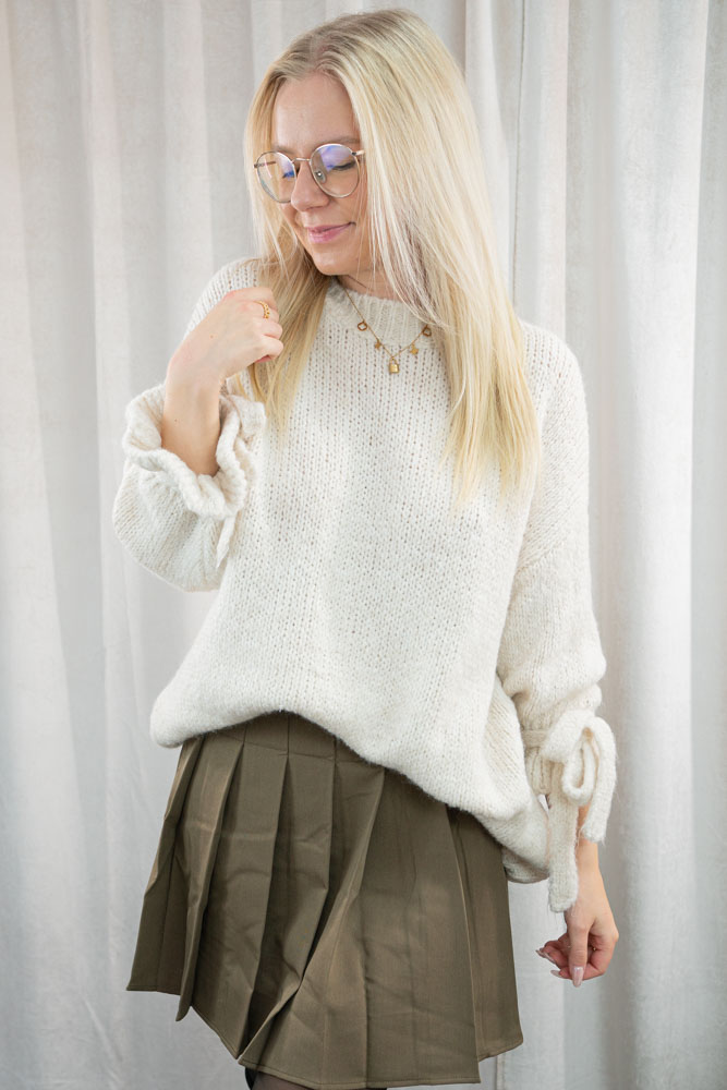 Schöner weicher Oversize Strick Pullover mit Rüschenärmeln und Bindedetails - hergestellt in Italien.