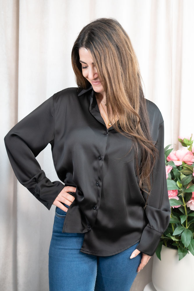 Satinbluse Hemdbluse Nadja schwarz