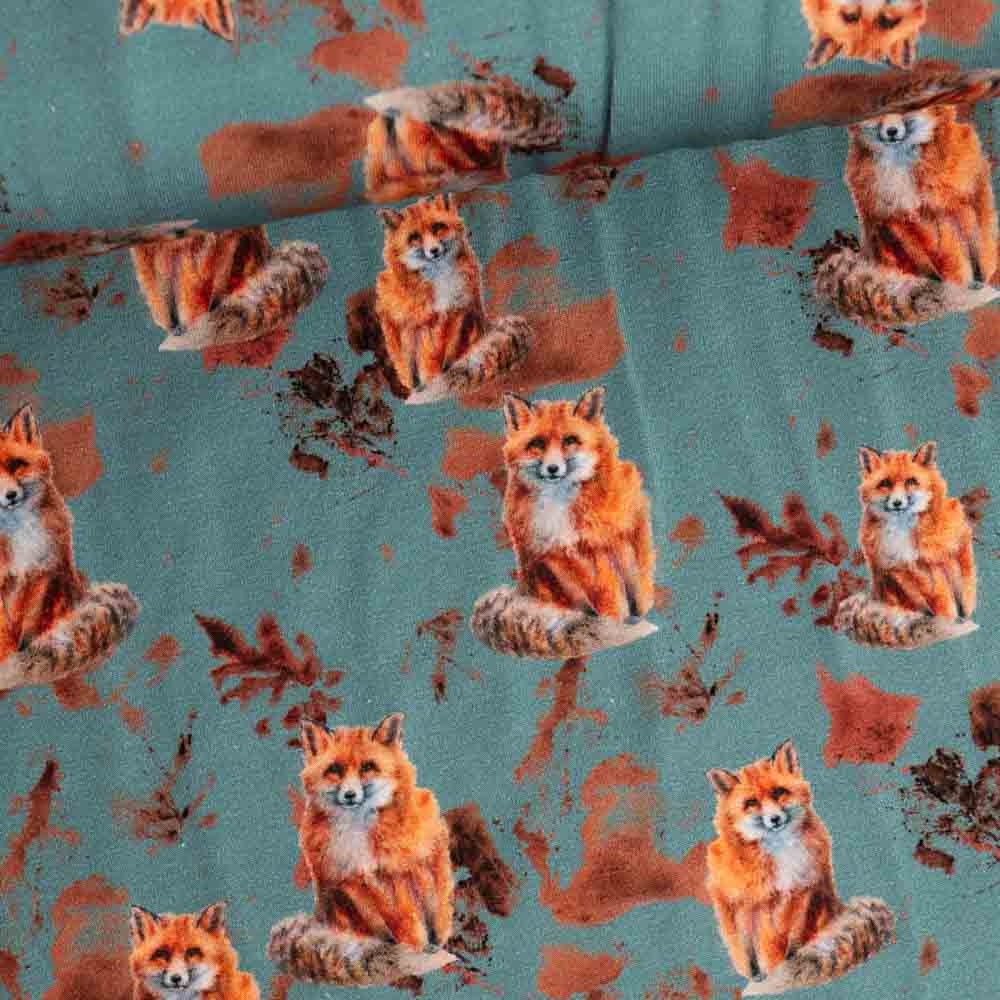 Baumwolljersey Digital Füchse dusty mint
