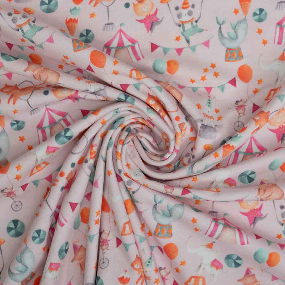 Baumwolljersey Zirkus Tiere rosa