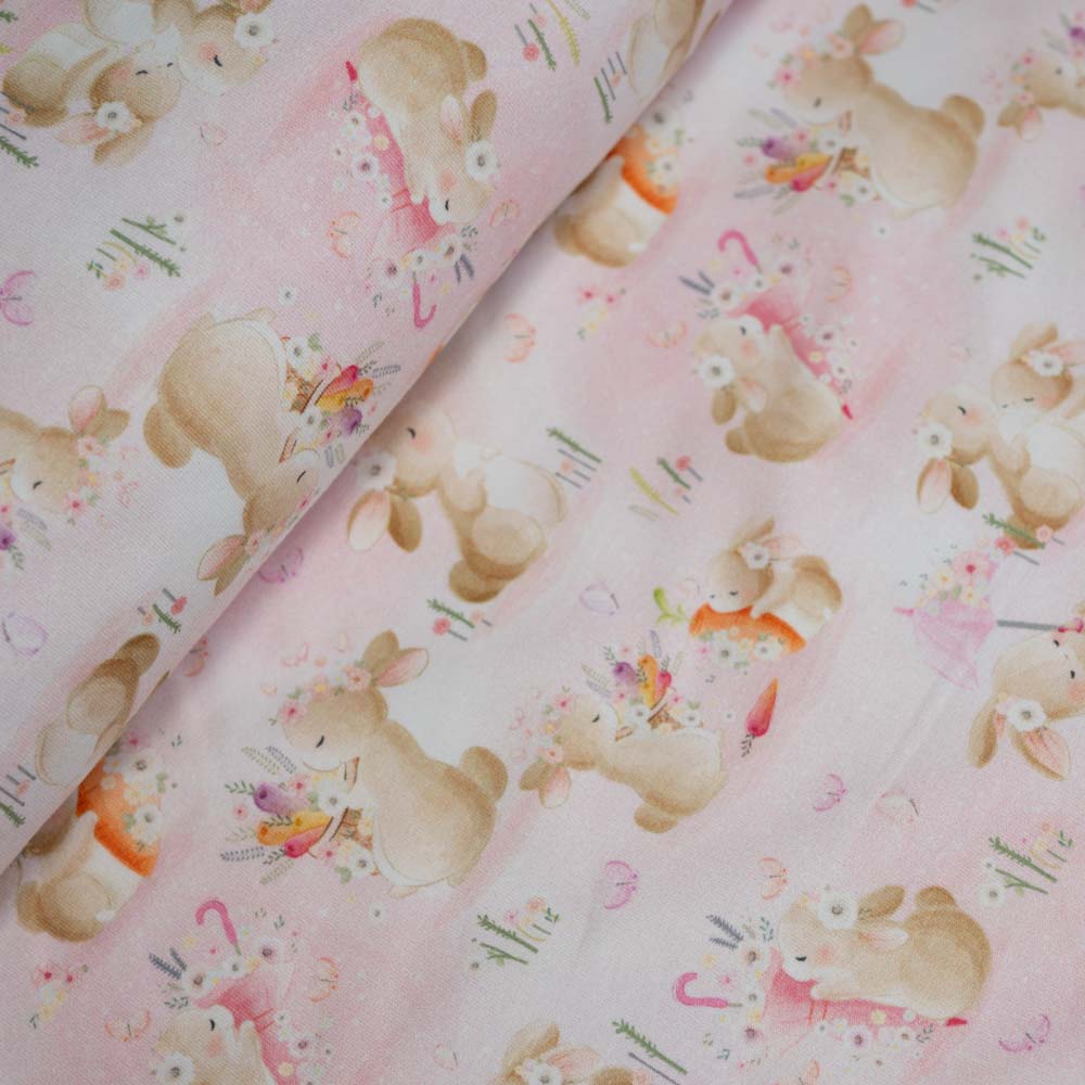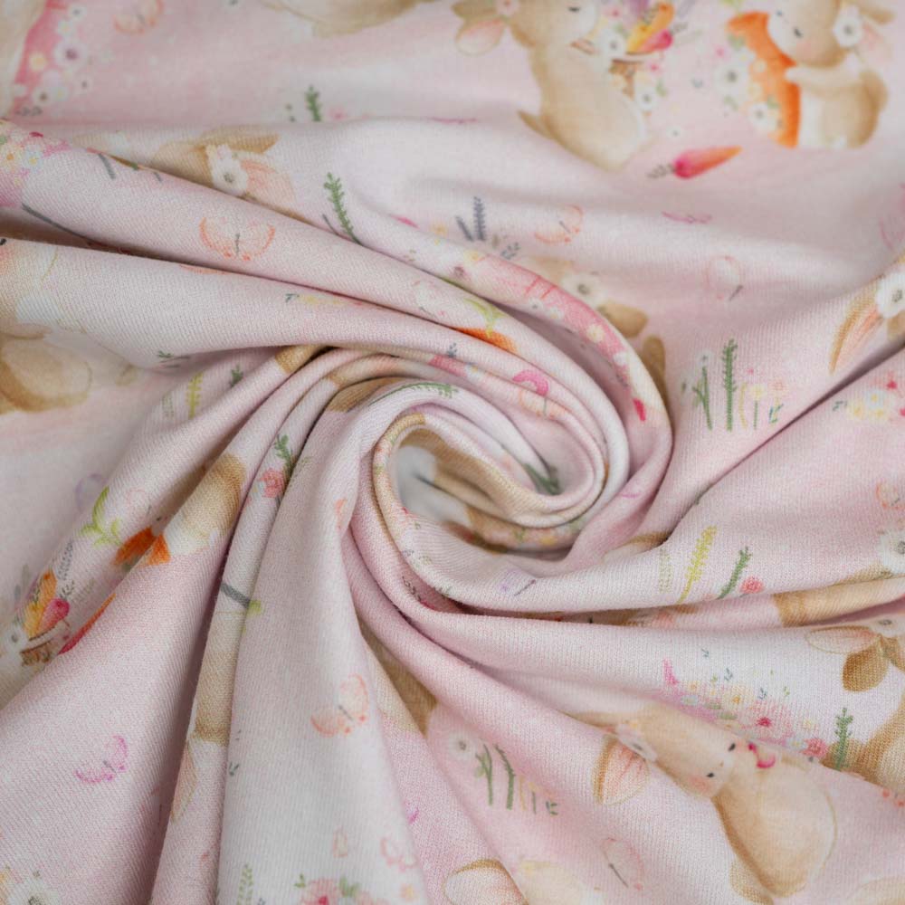 Baumwolljersey niedliche Häschen rosa