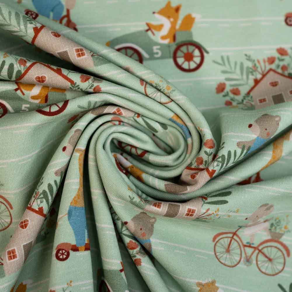 Baumwolljersey Bauernhof Freunde salbei