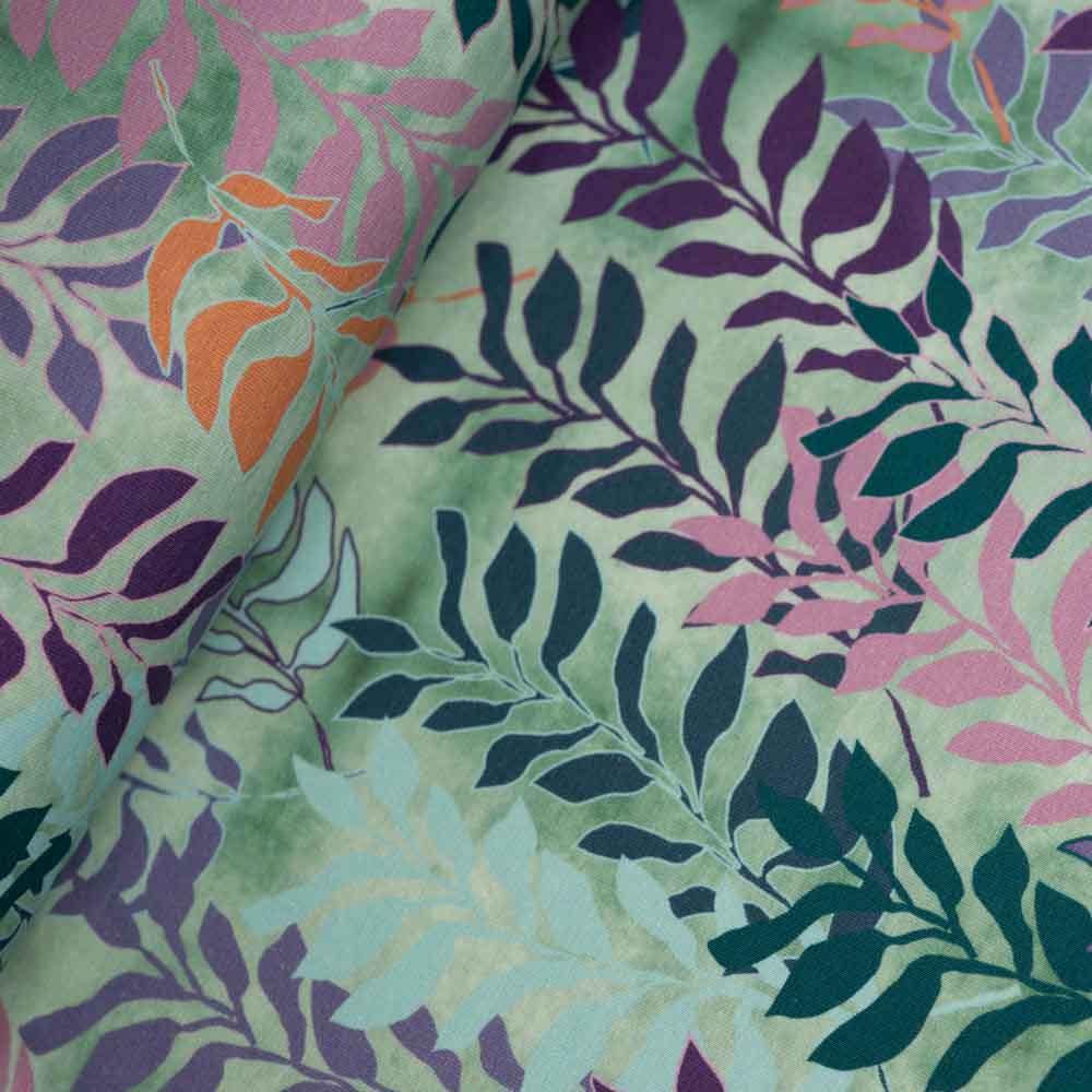 Baumwolljersey Blätterranken salbei