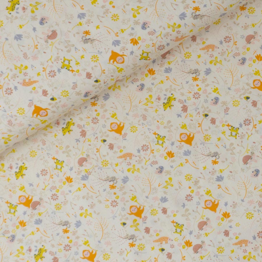 Baumwollwebware Popeline Dschungeltiere orange gelb