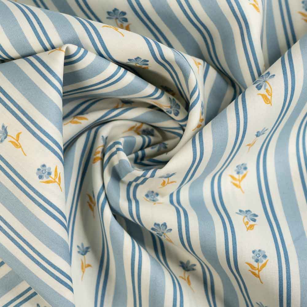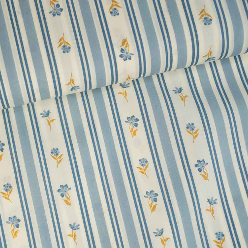 Baumwoll Popeline Blume mit Streifen jeansblau