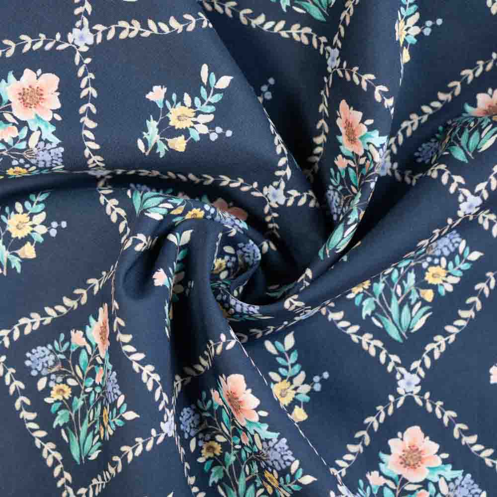 Baumwoll Popeline süße Blümchen im Viereck navy