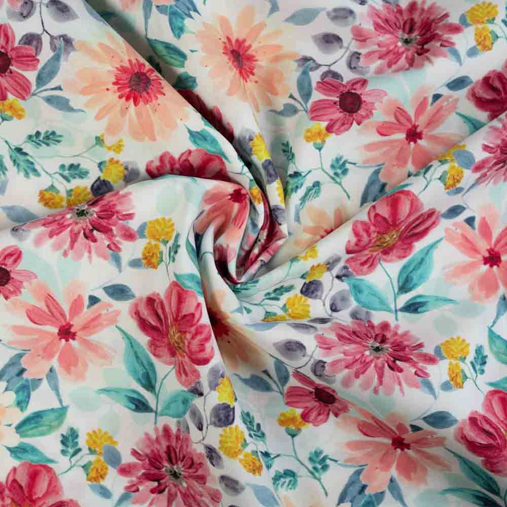 Baumwoll Popeline Aquarell Blumen apricot
