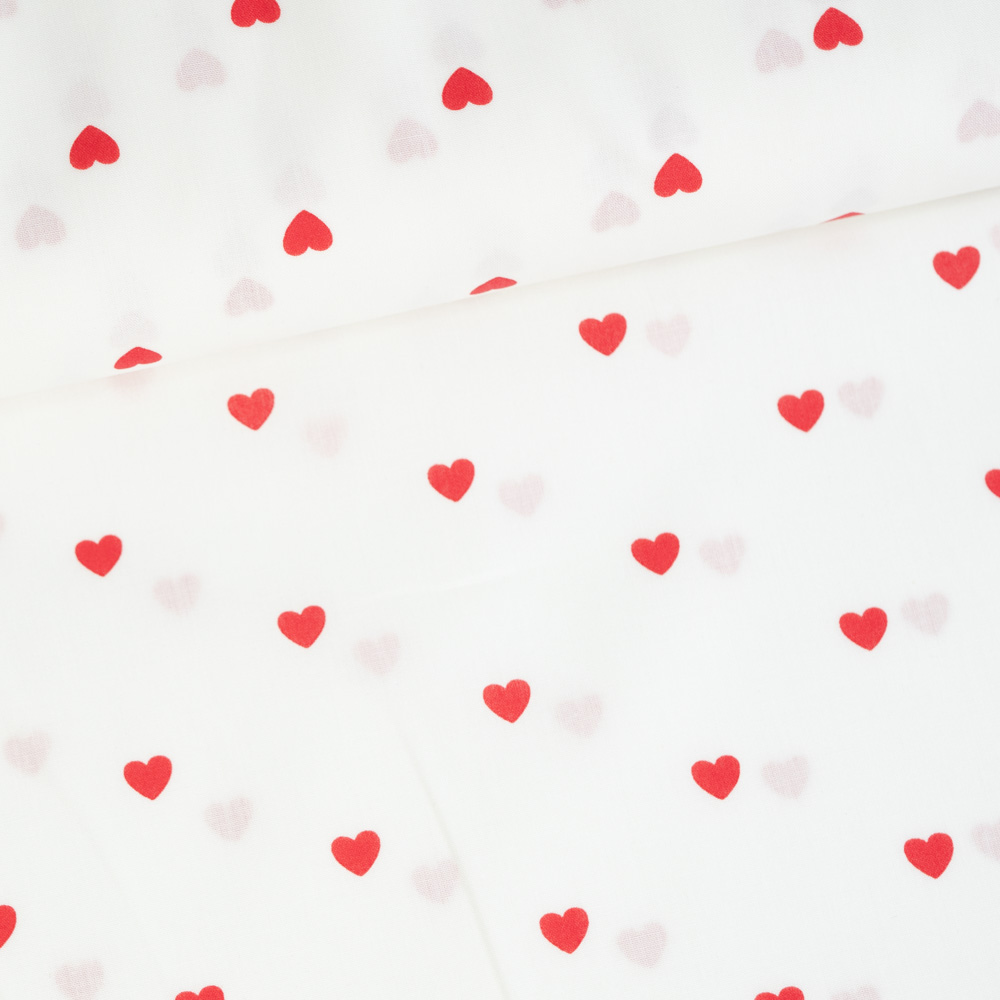 Baumwoll Popeline Herzchen weiß-rot