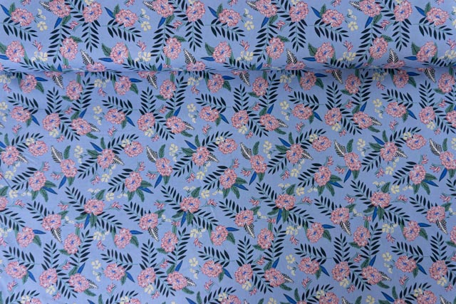 Baumwollwebware Gezeichnete Blumen jeansblau