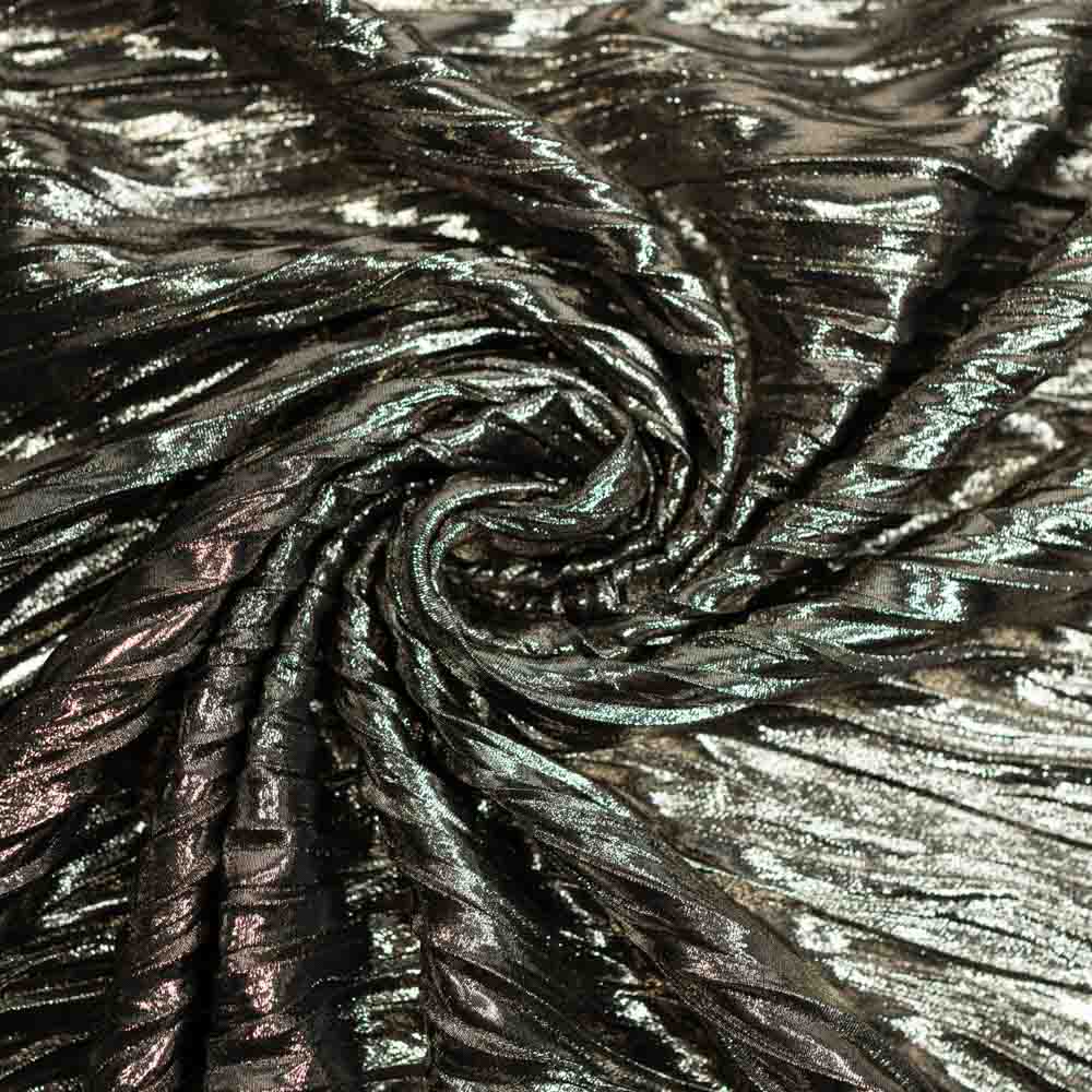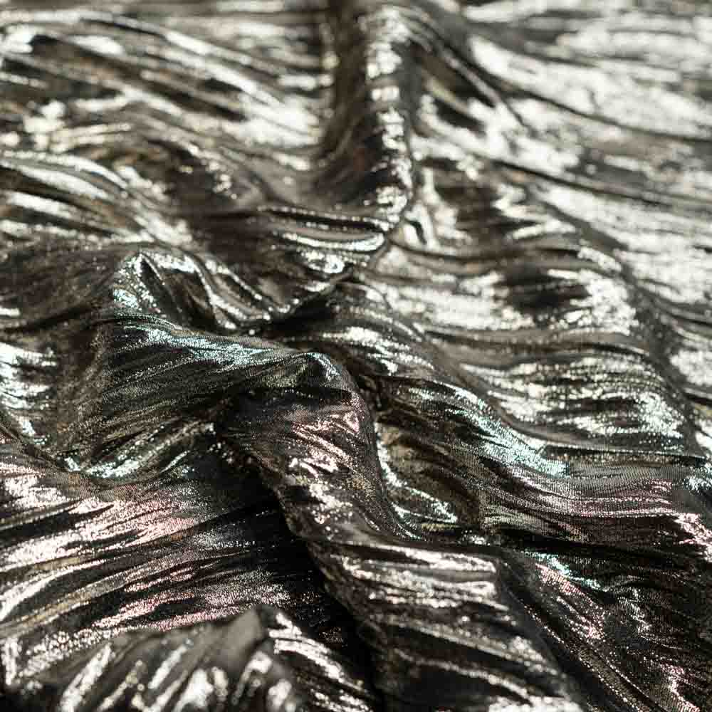Dieser wunderschöne Plisseestoff besticht durch seine feine Struktur und den modernen Metalleffekt, der je nach Lichteinfall dezent schimmert. Leicht und fließend im Fall, eignet er sich ideal für stilvolle Röcke.