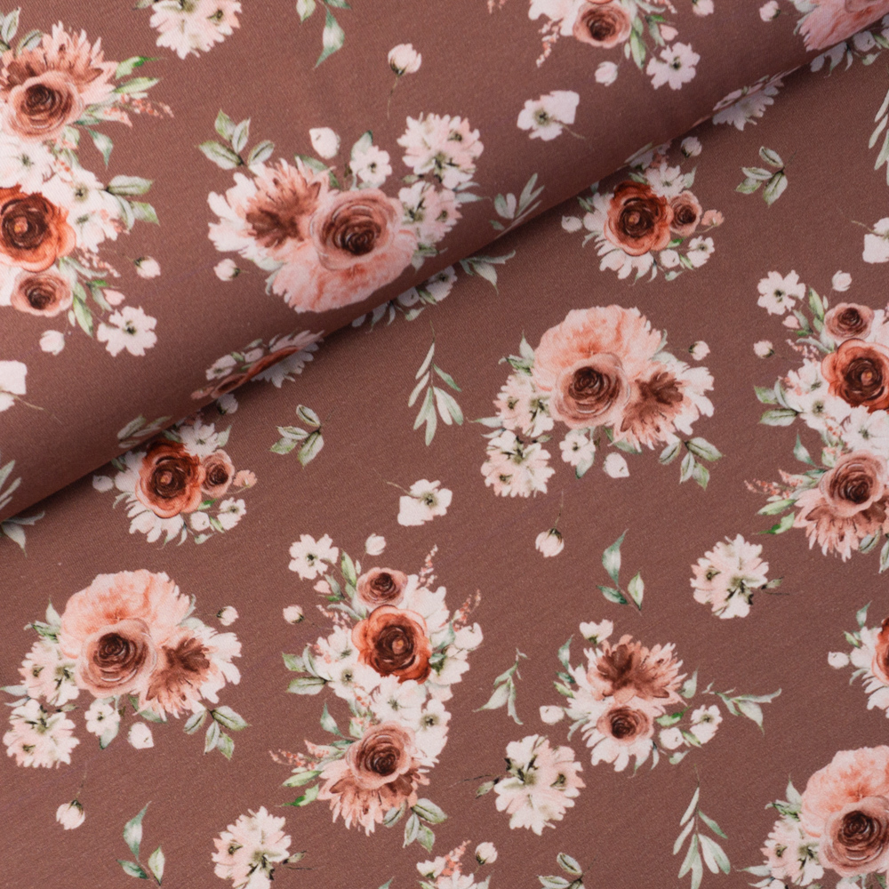 Baumwolljersey Digital Romantic Roses altrosa dunkel