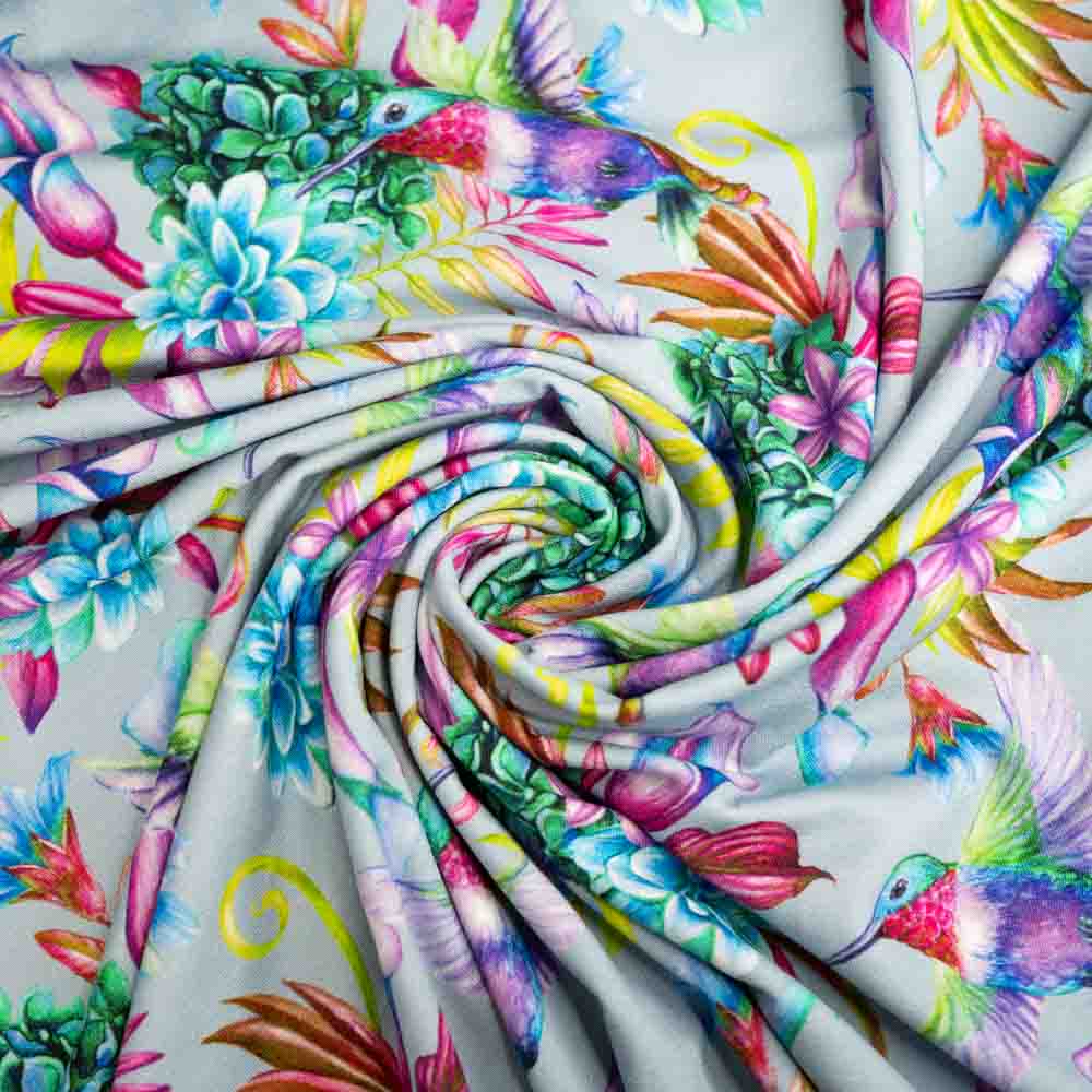 Viskosejersey Digital Kolibri jeansblau